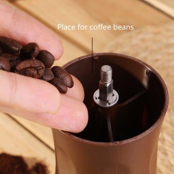 نحوه استفاده: برای استفاده از این آسیاب، کافی است درپوش بالای دستگاه را بردارید و دانههای قهوه را داخل محفظه بریزید. سپس با تنظیم پیچ تیغه، سایز آسیاب را انتخاب کرده و شروع به آسیاب کردن کنید. هر چه پیچ را محکمتر کنید، پودر قهوه ریزتر خواهد شد