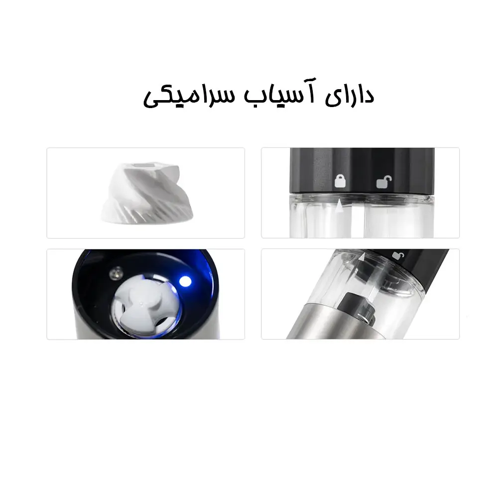 تیغه سرامیکی و موتور کارآمد: آسیاب یکنواخت بدون استهلاک زیاد و بدون گرم شدن ادویه.