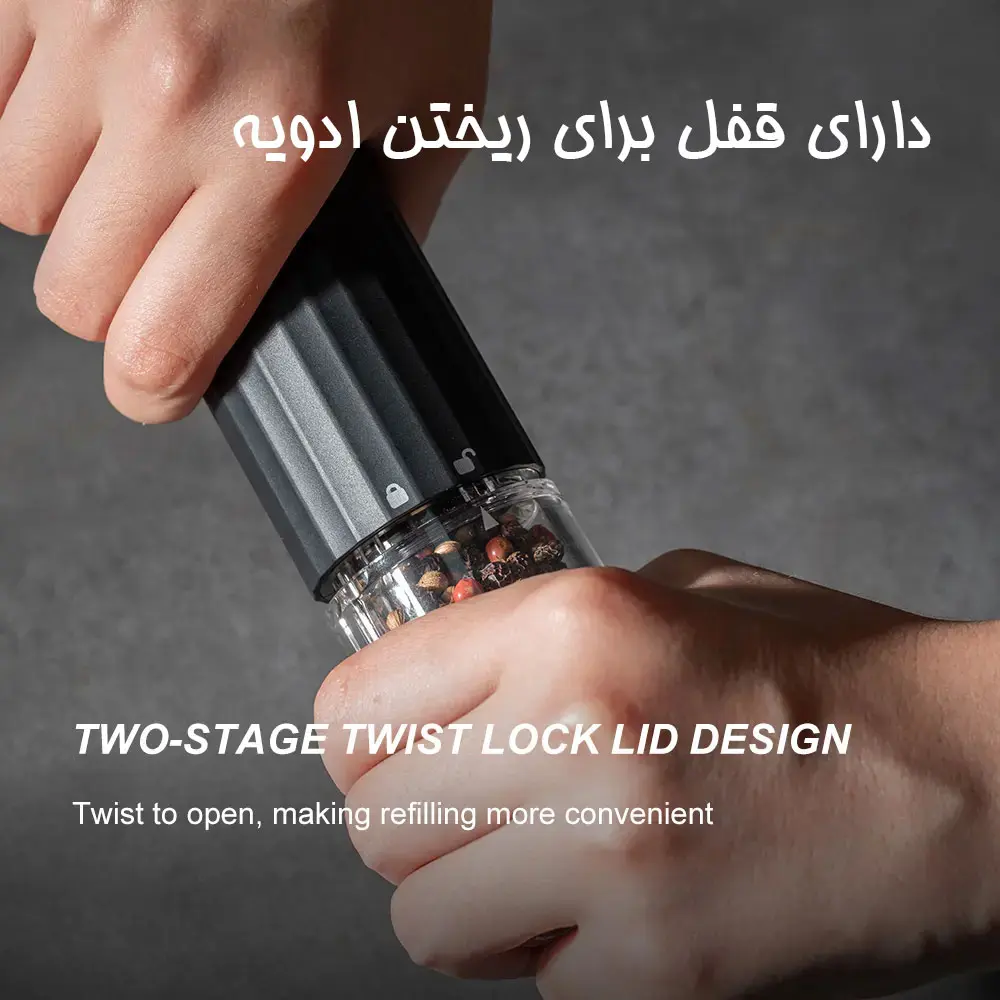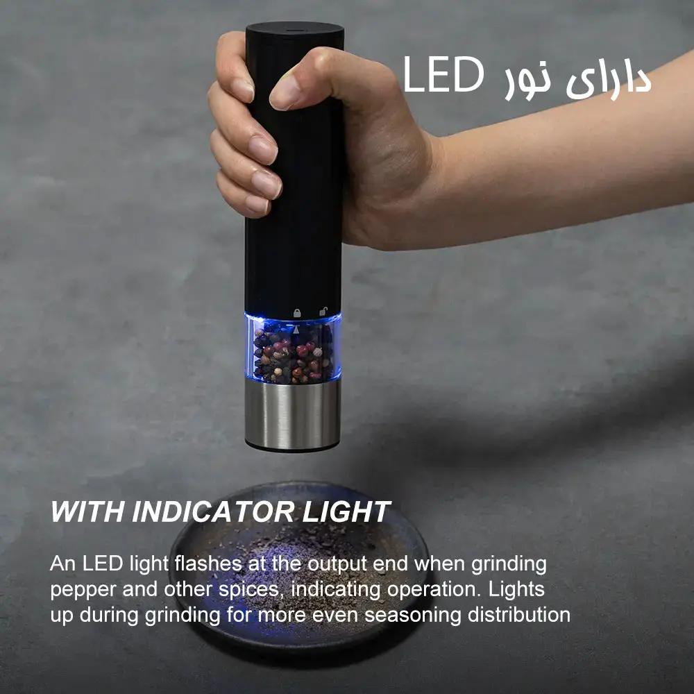 نور LED: روشنایی دقیق محل ریختن ادویه، مخصوصاً هنگام سرو روی میز یا سالاد.