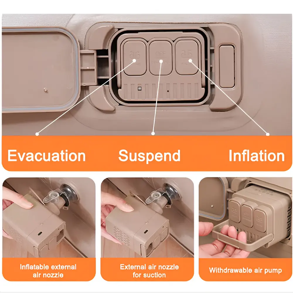 • باد شدن یا خالی شدن تشک در چند دقیقه، بدون نیاز به پمپ جداگانه