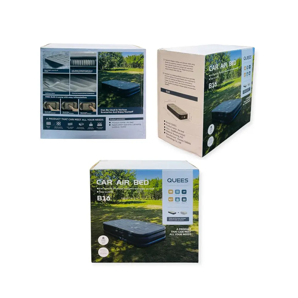تشک بادی سفری یک نفره کوئیس مدل B16 با پمپ شارژی داخلی، سطح خواب نرم و طراحی ارگونومیک، خوابی راحت و شبیه تخت معمولی را در سفر، کمپ یا خانه فراهم می‌کند. باد و تخلیه سریع، بدنه مقاوم و قابلیت استفاده طولانی‌مدت از ویژگی‌های اصلی این تشک است.