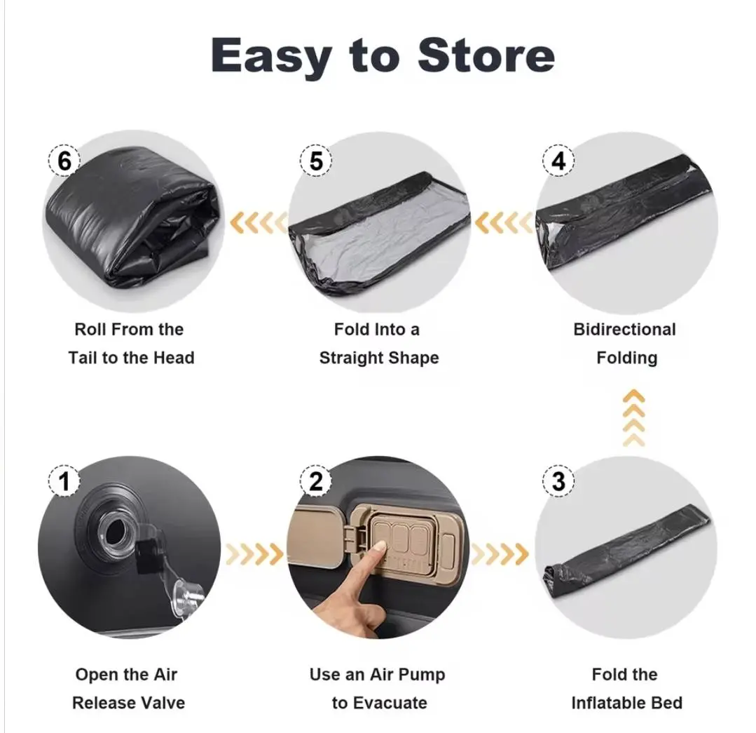 پس از تخلیه هوا، تشک به‌راحتی رول می‌شود و فضای کمی اشغال می‌کند؛ بنابراین به‌سادگی داخل صندوق عقب خودرو یا کمد قرار می‌گیرد و برای سفرهای جاده‌ای، کمپینگ، اقامت موقت یا حتی استفاده داخل منزل کاملاً ایده‌آل است.