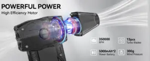 این دمنده از طریق درگاه Type-C شارژ می‌شود و باتری دوگانه آن زمان کارکرد مناسبی ارائه می‌دهد. نمایشگر LED روی بدنه نیز وضعیت عملکرد، میزان آماده‌به‌کار و حالت‌های دستگاه را نمایش می‌دهد تا در هر لحظه روی وضعیت کار مسلط باشید.