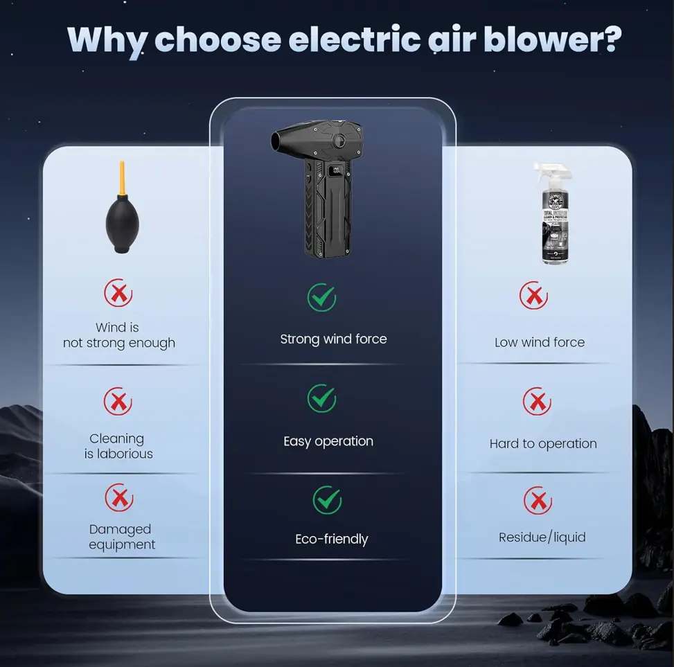 دمنده هوای شارژی توربوفن مدل XN-P026 یک دستگاه حرفه‌ای با موتور براش‌لس، فشار باد متمرکز، دو حالت عملکرد و نمایشگر LED است. مناسب تمیزکردن لپ‌تاپ، کیس، کیبورد، کنسول بازی و قطعات حساس. قابل شارژ با Type-C و جایگزینی اقتصادی برای اسپری‌های یکبارمصرف.