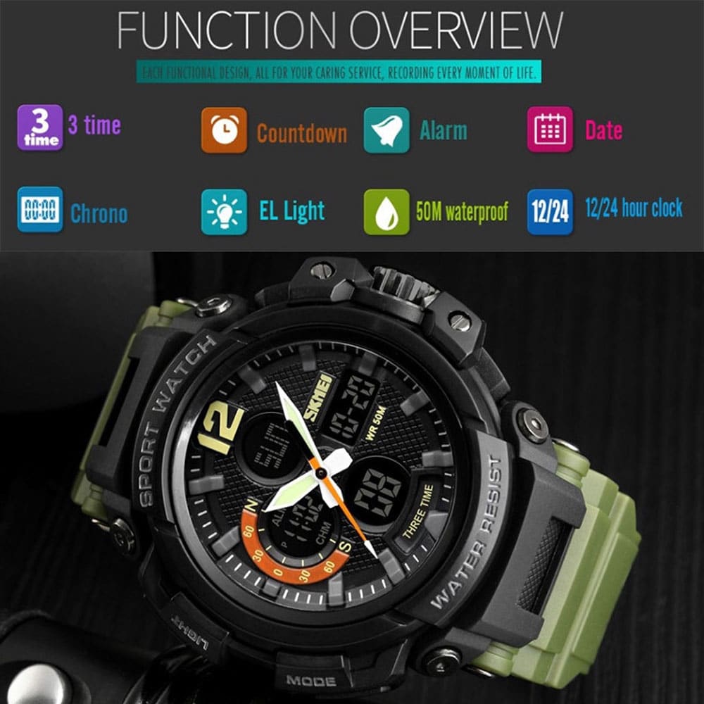 ساعت مچی اسکمی مدل 1343 از سری ساعتهای اسپرت و مقاوم برند اسکمی است که طراحی زیبا و کاربردی آن، به شما این امکان را میدهد تا با راحتی و دقت زمان خود را مدیریت کنید. این ساعت علاوه بر جذابیت ظاهری، به عنوان یک ابزار کاربردی برای استفاده روزمره و فعالیتهای ورزشی نیز به شمار میآید