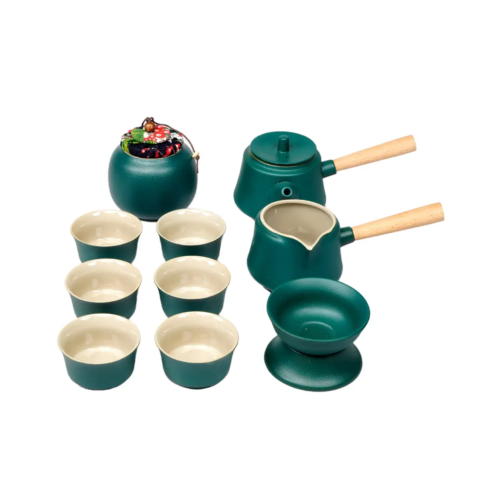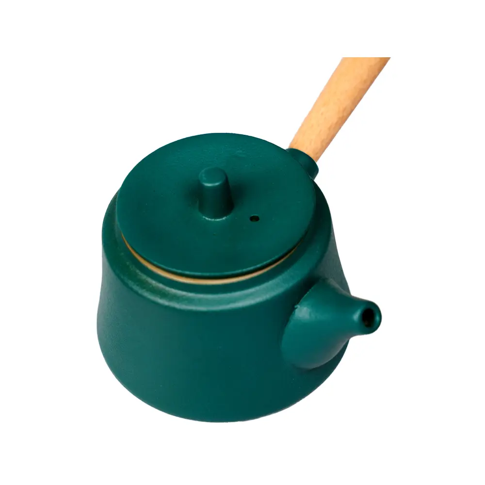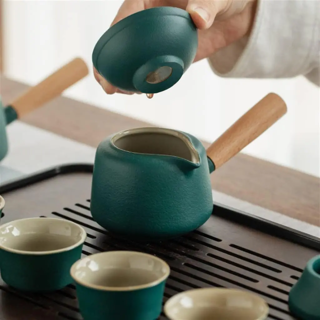 رنگ سبز ملایم، بافت طبیعی سرامیک و استفاده از جزئیات چوبی، فضایی گرم و آرامشبخش ایجاد میکند. این طراحی ساده اما عمیق، بهراحتی با دکورهای مینیمال، سنتی و مدرن هماهنگ میشود و جلوهای خاص به میز پذیرایی یا فضای نوشیدن دمنوش میبخشد.
