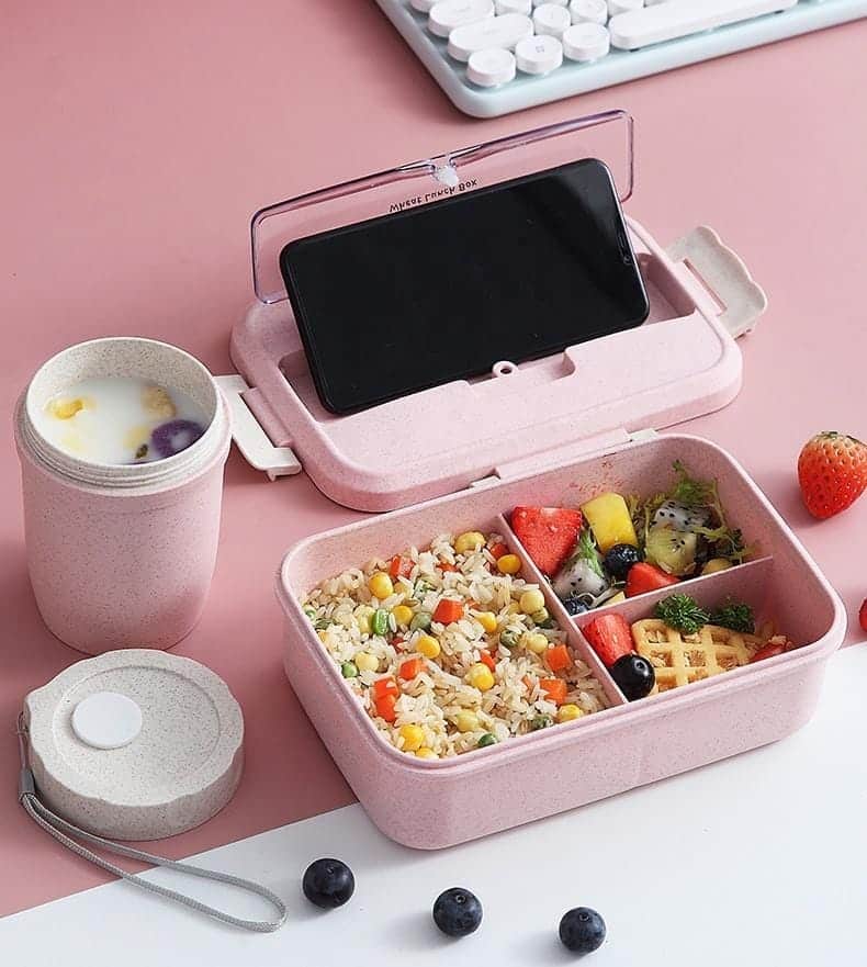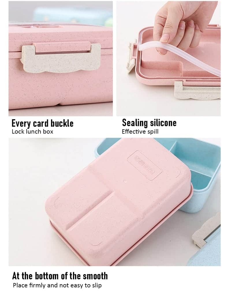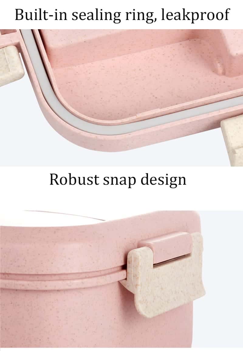این ظرف غذا و لانچ باکس از الیاف بامبو و پلاستیک از نوع پلاستیک غیر سمی و آنتی باکتریال هستند. فاقد مواد سمی هستند قابل استفاده در مایکروفر و ماشین ظرفشویی و فریزر میباشند این ظرف ها آنتی باکتریال هستند و از خراب شدن غذای شما جلوگیری میکنند کاملا بدون نشتی و دارای طراحی زیبا و سبک هستند. درب ظرف واشر دارد که از نشت مواد غذایی جلوگیری میکند میتوانید به راحتی مایعات و سوپ را داخل ظرف نگه داری کنید مناسب محل کار مدرسه باشگاه و پیک نیک و ….