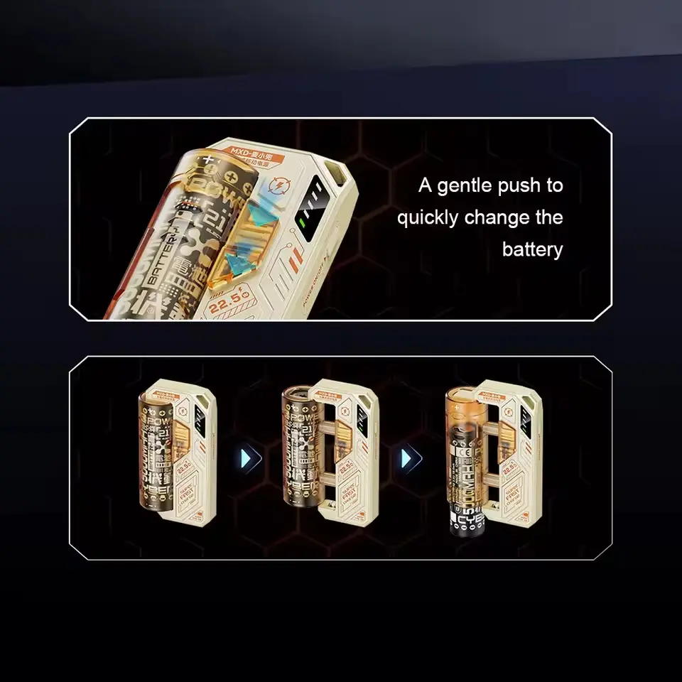 مهمترین ویژگی آن، طراحی خشابی و باتری قابل تعویض است؛ بهراحتی میتوانید باتری را خارج کرده و باتری جدید جایگزین کنید، بدون نیاز به شارژ کل پاوربانک.