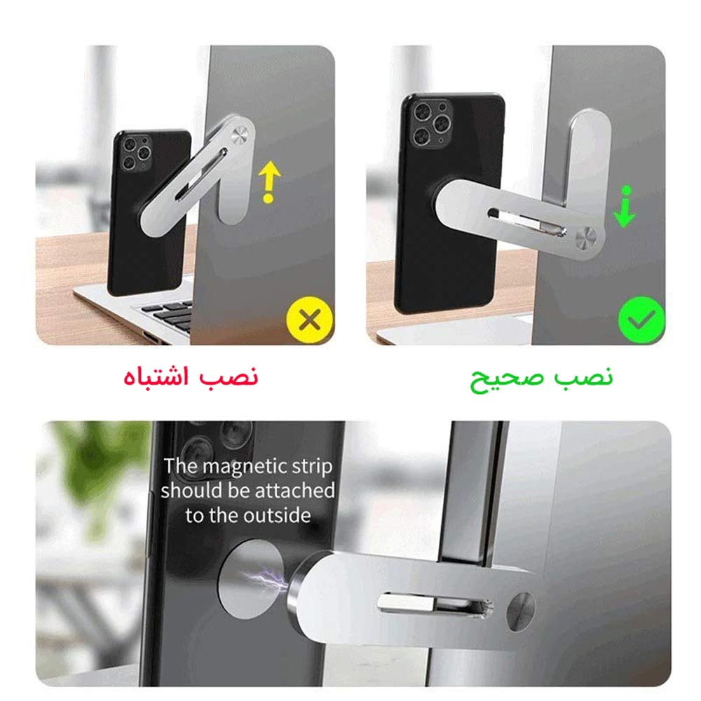 ✅ چسب محکم و مغناطیسی: این پایه با کمک چسب مقاوم به پشت لپ تاپ متصل میشود و دارای آهنربای قوی است که گوشی را به راحتی به هولدر وصل میکند
